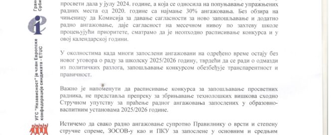 Данас би требало да започну преговори о износу минималне зараде за 2026. годину а тим поводом два репрезентативне синдикалне организације – Уједињени грански синдикати “Независност“ и Савез самосталних синдиката спровели су анкету о зарадама и трошковима запослених, као и о њиховим проценама реалног обима потрошачке корпе.