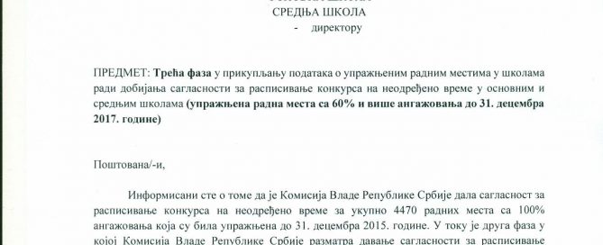 У овој фази се прикупљају подаци о упражњеним радним местима са 60% и више ангажовања, која су упражњена до 31.12.2017. године. У припреми је и четврта фаза која ће обухватити и радна места са 50% ангажовања.