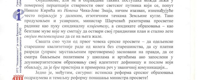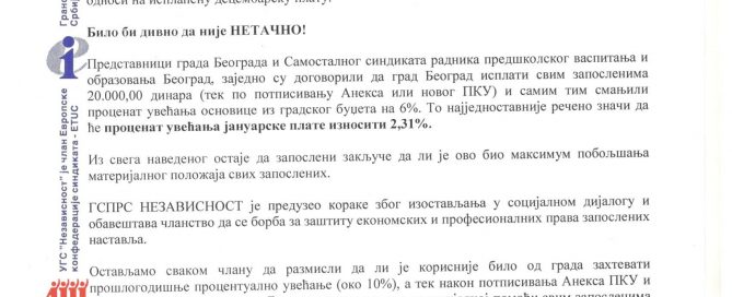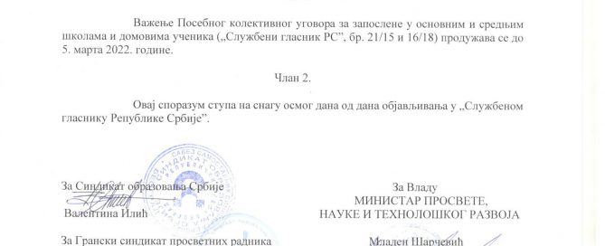 Потписан је Споразум о продужењу рока важења Посебног колективног уговора за запослене у основним и средњим школама и домовима ученика.