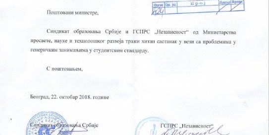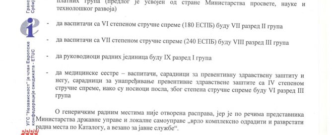 Министарство просвете, науке и технолошког развоја заказало је за уторак, 23.10.2018. године, састанак са представницим репрезентативних синдиката запослених у предшколским установама. Састанку ће присуствовати и представници Министарства државне управе и локалне самоуправе.