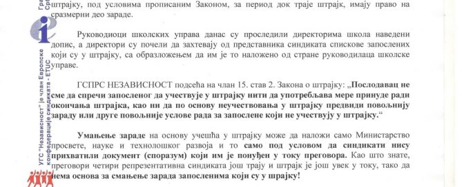 САОПШТЕЊЕ ЗА ЈАВНОСТ ГСПРС НЕЗАВИСНОСТ