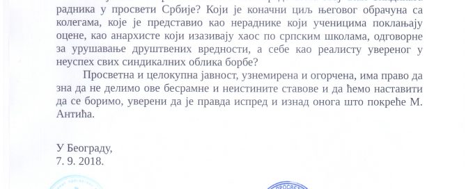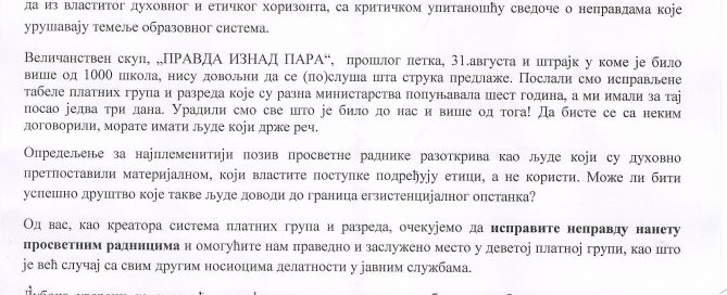 ГСПРС НЕЗАВИСНОСТ остаје при свом ставу и захтеву да сви просветни радници са седмим степеном стручне спреме буду у деветој платној групи и разреду првом, јер је систем напредовања повољнији. Такође, указивање да би тако мали проценат повећања плата изражен у повећању коефицијената угрозио стабилност и монетарни систем Србије, као и да би допринео смањењу основице, у сукобу је са здравим разумом и просветним радницима вређа интелект. Шта је суштина тако чврсте одбране неправде које су заступали представници ових министарстава, видећемо у догледној будућности. Запосленима у просвети треба да је јасно да је циљ да се спречи мотивисано напредовање у будућности, да се деценијска неправда и агонија продужи, а да се образовни систем додатно уруши.