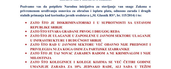 На основу одлуке Извршног одбора ГСПРС НЕЗАВИСНОСТ донете на састанку одржаном 05.07.2018. године, позивамо вас на заједнички састанак у просторијама ГСПРС НЕЗАВИСНОСТ 10.07.2018. године у 11 сати. Главне теме састанка усмерене су на заједничке ставове и активности у оквиру Закона о платама запослених у јавним службама, Закона о штрајку, Закона о запосленим у јавним службама …