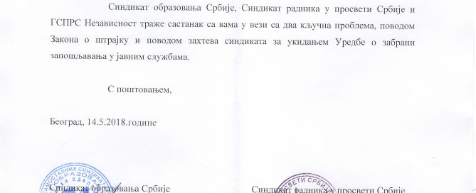 РЕАКЦИЈА НА ОБЈАВУ УНИЈЕ СИНДИКАТА ПРОСВЕТНИХ РАДНИКА СРБИЈЕ У ВЕЗИ СА НАЦРТОМ ЗАКОНА О ШТРАЈКУ