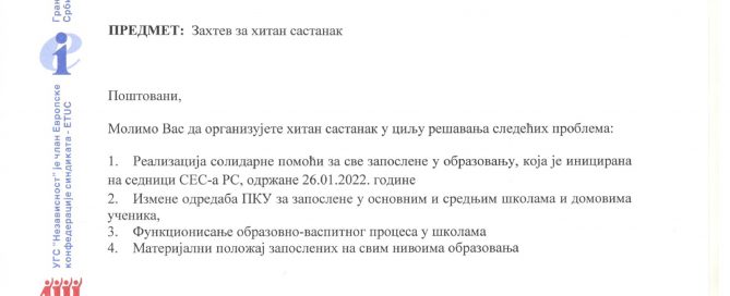 - Репрезентативни синдикати ће у што краћем року проследити иницијативу за покретање преговарачког процеса за закључивање Посебног колективног уговора за предшколске установе чији је оснивач град Београд.